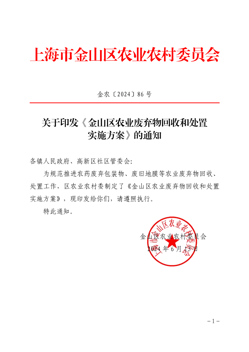 金山區(qū)農(nóng)業(yè)廢棄物回收和處置實施方案