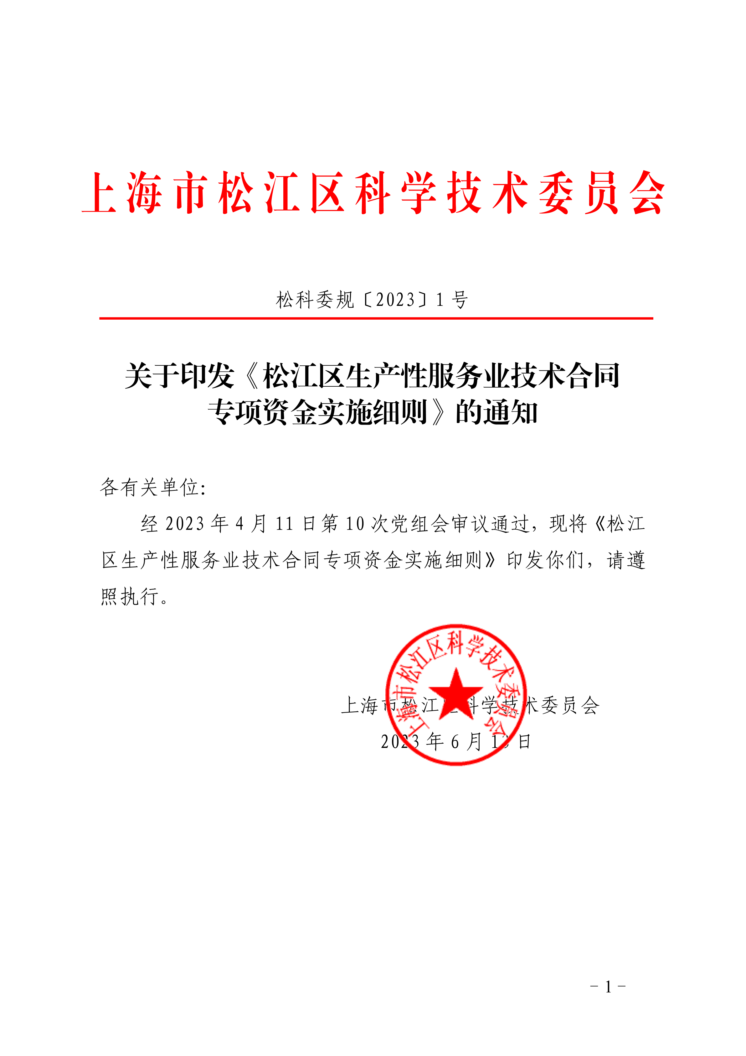 關(guān)于印發(fā)《松江區(qū)生產(chǎn)性服務(wù)業(yè)技術(shù)合同專(zhuān)項(xiàng)資金實(shí)施細(xì)則》的通知