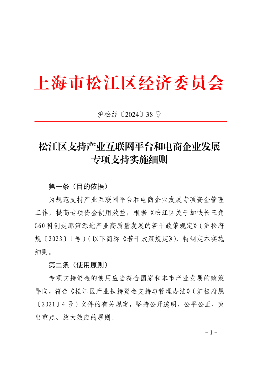 ??為規(guī)范支持產(chǎn)業(yè)互聯(lián)網(wǎng)平臺和電商企業(yè)發(fā)展專項(xiàng)資金管理工作,提高專項(xiàng)資金使用效益,根據(jù)《松江區(qū)關(guān)于加快長三角G60科創(chuàng)走廊策源地產(chǎn)業(yè)高質(zhì)量發(fā)展的若干政策規(guī)定》(滬松府規(guī)〔2023〕1號)(以下簡稱《若干政策規(guī)定》),特制定本實(shí)施細(xì)則。