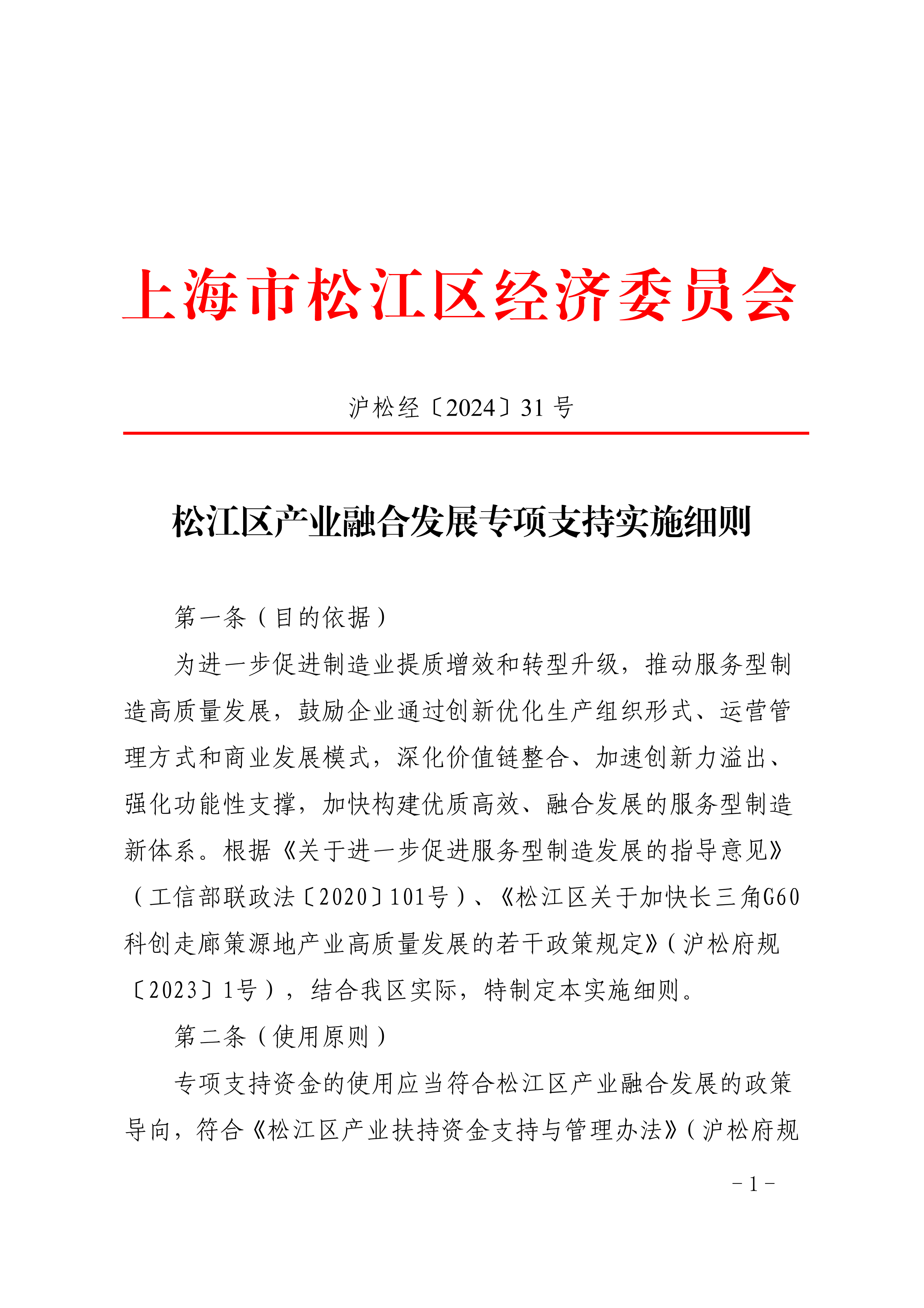 松江區(qū)產(chǎn)業(yè)融合發(fā)展專項支持實(shí)施細(xì)則