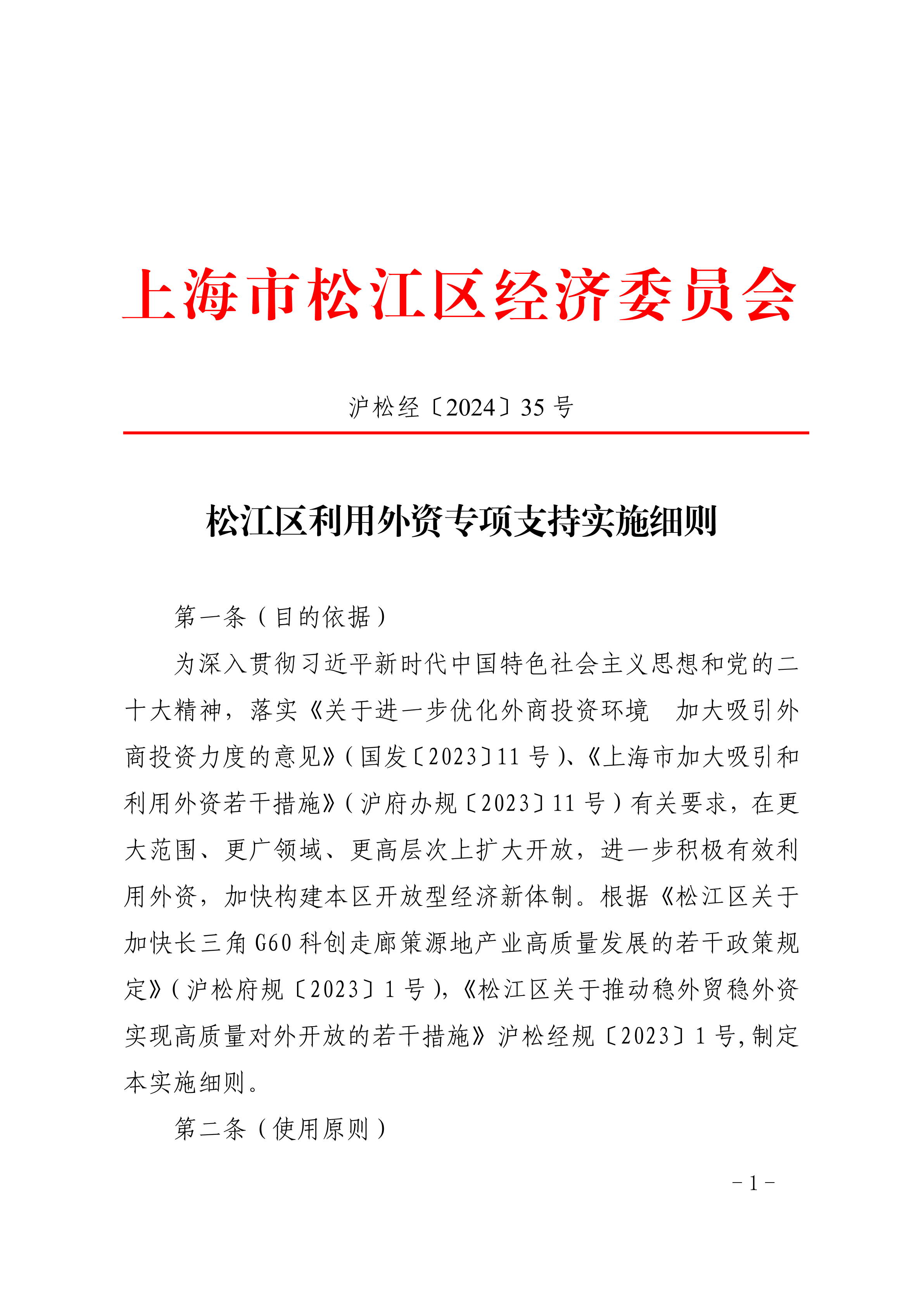 松江區(qū)利用外資專(zhuān)項(xiàng)支持實(shí)施細(xì)則