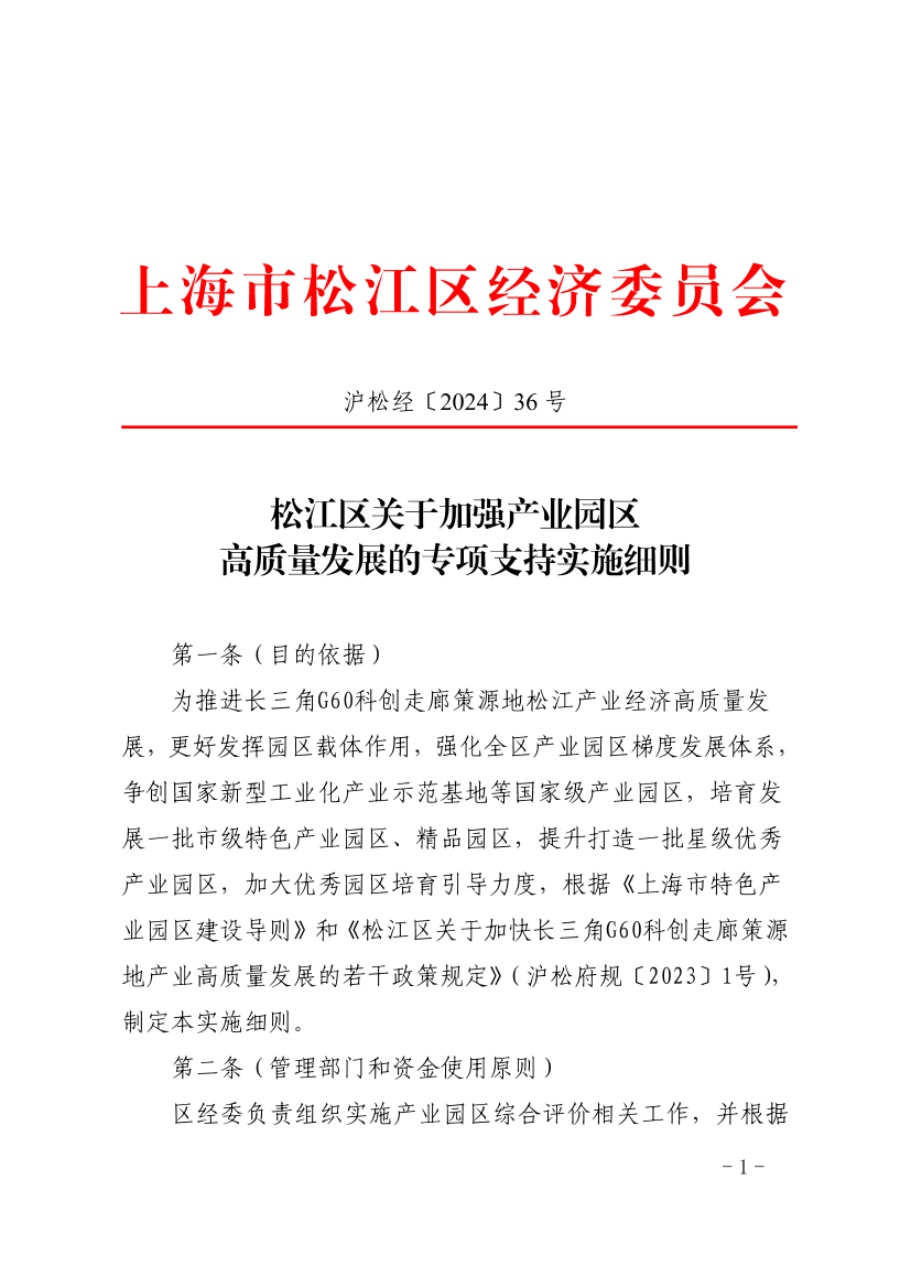 松江區(qū)關(guān)于加強(qiáng)產(chǎn)業(yè)園區(qū)高質(zhì)量發(fā)展的專項(xiàng)支持實(shí)施細(xì)則