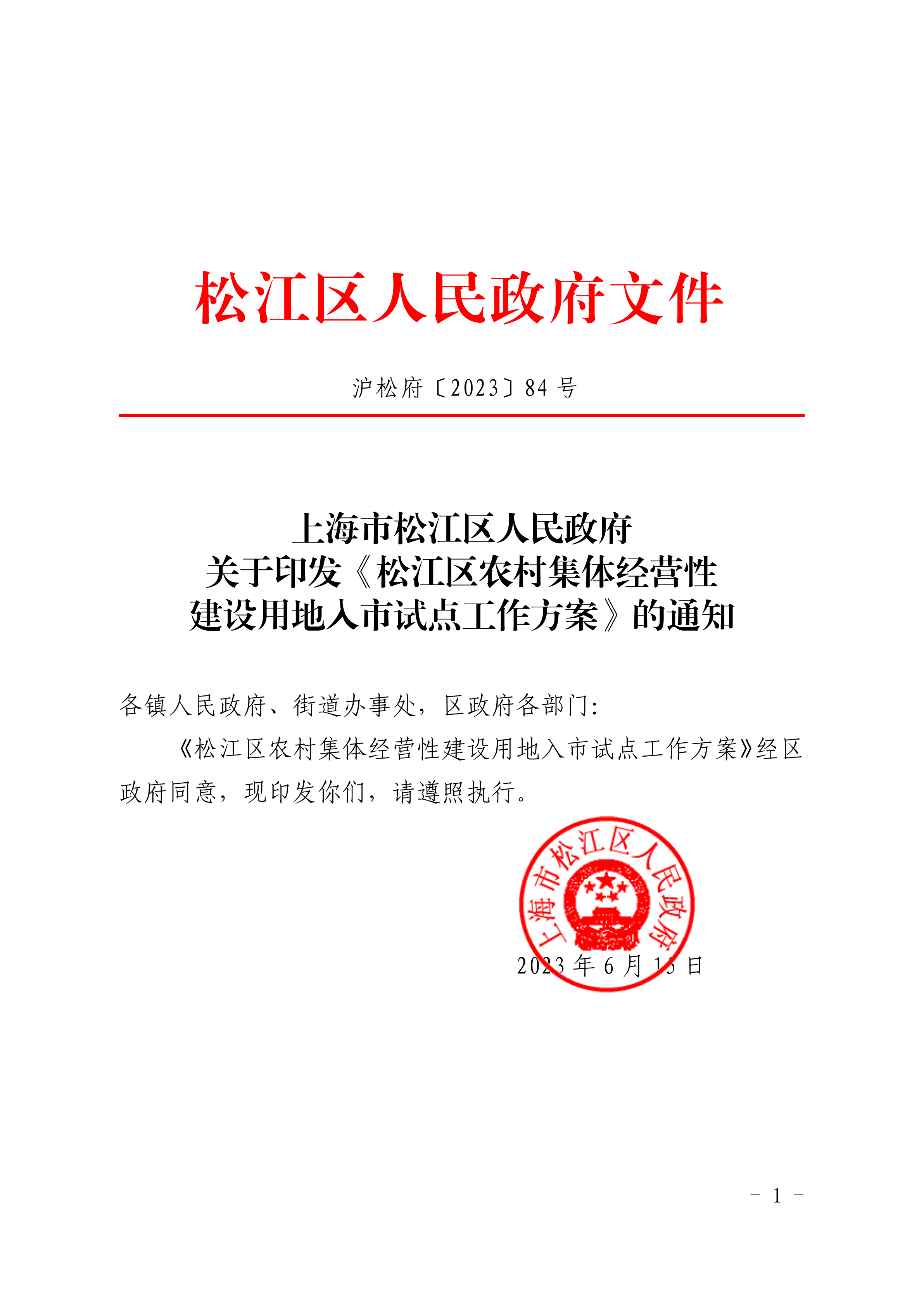 關(guān)于印發(fā)《松江區(qū)農(nóng)村集體經(jīng)營(yíng)性建設(shè)用地入市試點(diǎn)工作方案》的通知