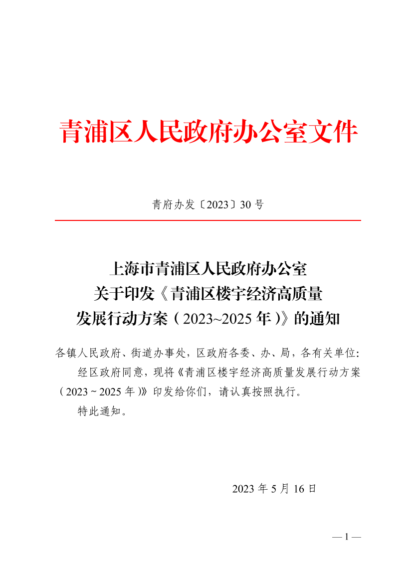 經(jīng)區(qū)政府同意,現(xiàn)將《青浦區(qū)樓宇經(jīng)濟高質量發(fā)展行動方案(2023~2025年)》印發(fā)給你們,請認真按照執(zhí)行。