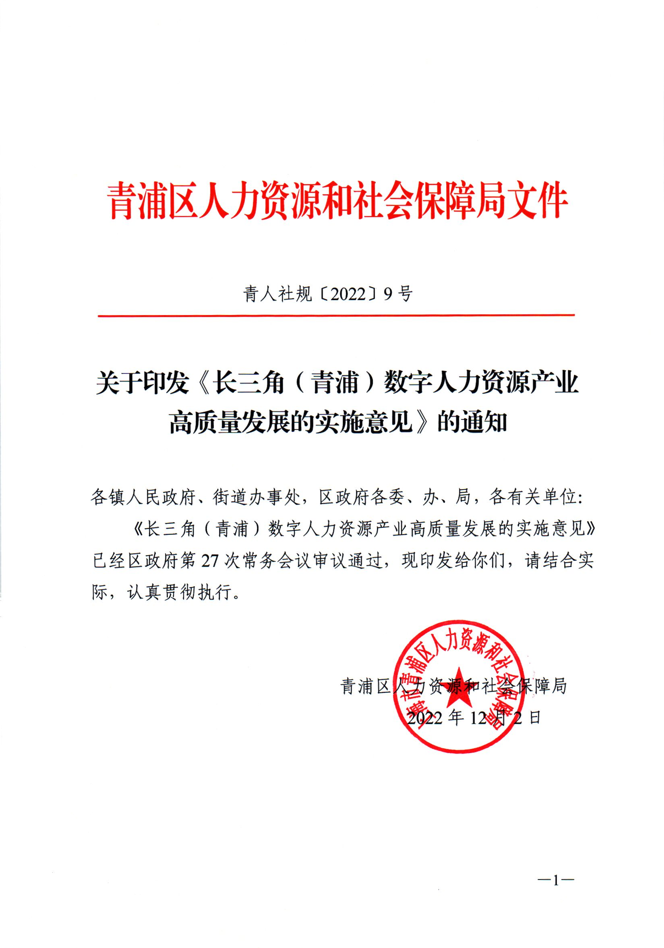 關(guān)于印發(fā)《長三角(青浦)數(shù)字人力資源產(chǎn)業(yè)高質(zhì)量發(fā)展的實施意見》的通知