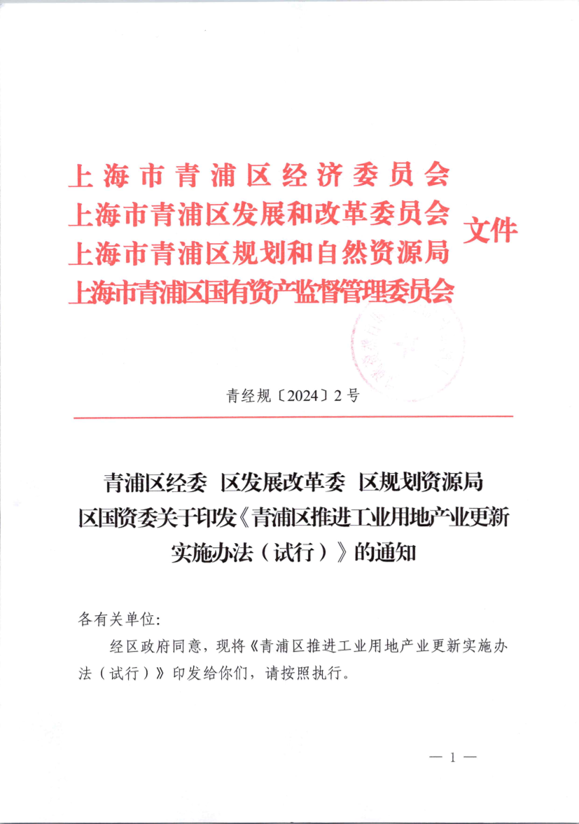 青浦區(qū)推進(jìn)工業(yè)用地產(chǎn)業(yè)更新實(shí)施辦法(試行)