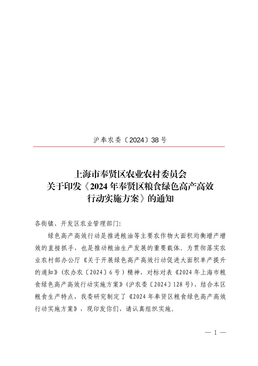 關(guān)于印發(fā)《2024年奉賢區(qū)糧食綠色高產(chǎn)高效行動實施方案》的通知
