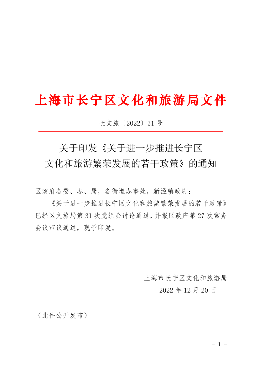 關(guān)于進(jìn)一步推進(jìn)長(zhǎng)寧區(qū)文化和旅游繁榮發(fā)展的若干政策