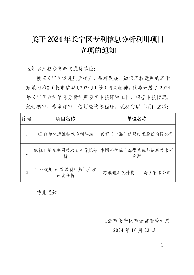 關(guān)于2024年長寧區(qū)專利信息分析利用項目立項的通知