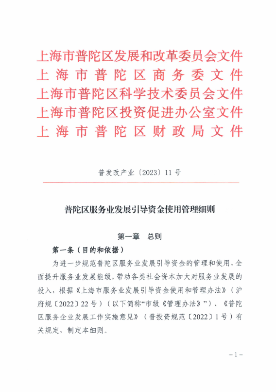 ??為進(jìn)一步規(guī)范普陀區(qū)服務(wù)業(yè)發(fā)展引導(dǎo)資金的管理和使用,全面提升服務(wù)業(yè)發(fā)展能級(jí),帶動(dòng)各類社會(huì)資本加大對(duì)服務(wù)業(yè)發(fā)展的投入,根據(jù)《上海市服務(wù)業(yè)發(fā)展引導(dǎo)資金使用和管理辦法》(滬府規(guī)〔2022〕22號(hào))(以下簡(jiǎn)稱“市級(jí)《管理辦法》”)、《普陀區(qū)服務(wù)企業(yè)發(fā)展工作實(shí)施意見》(普投資規(guī)范〔2022〕1號(hào))有關(guān)規(guī)定,制定本細(xì)則。