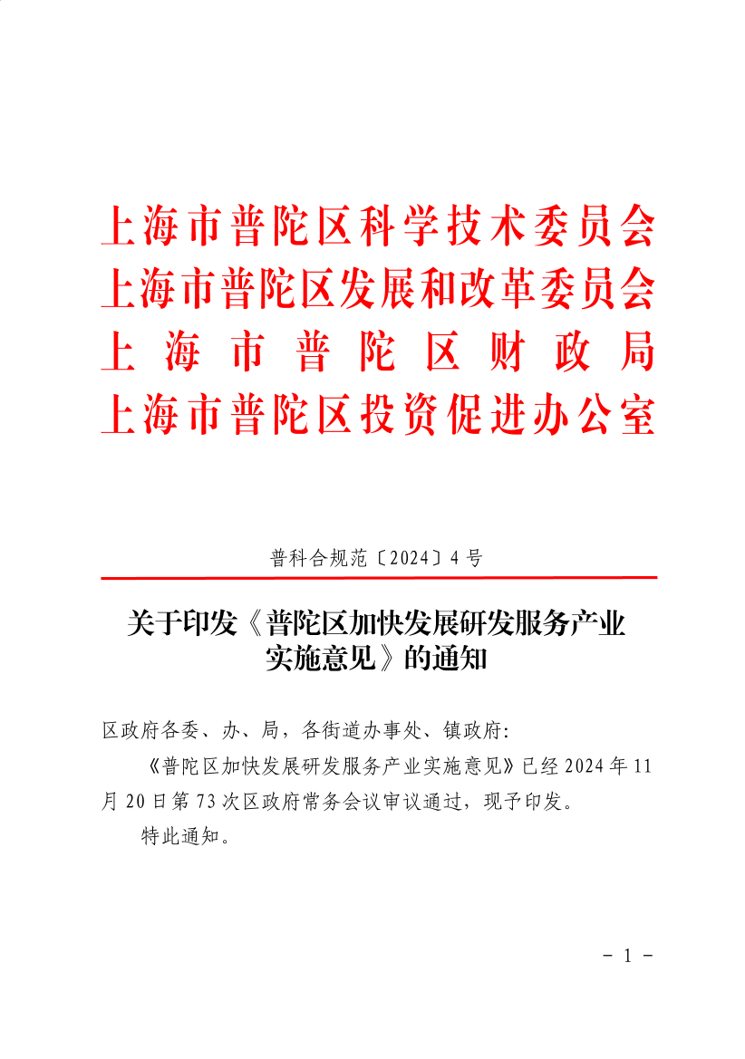 普陀區(qū)加快發(fā)展研發(fā)服務(wù)產(chǎn)業(yè)實(shí)施意見(jiàn)