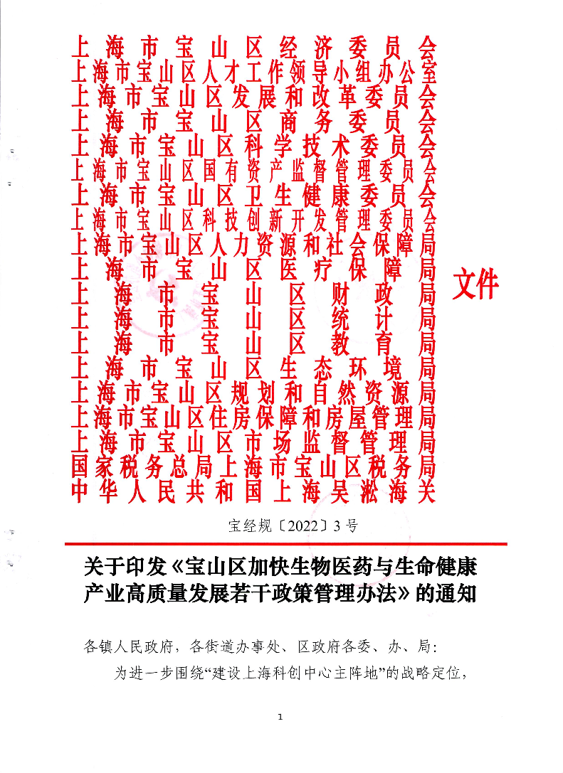 寶山區(qū)加快生物醫(yī)藥與生命健康產(chǎn)業(yè)高質(zhì)量發(fā)展若干政策管理辦法