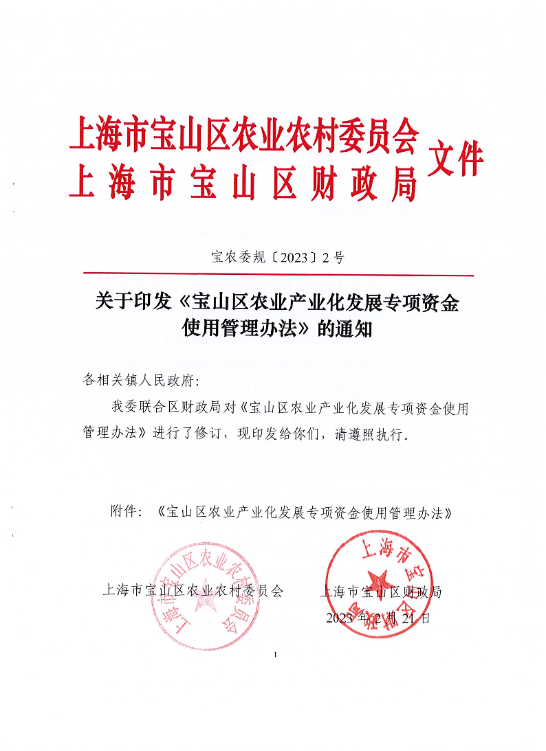 ??附件:《寶山區(qū)農(nóng)業(yè)產(chǎn)業(yè)化發(fā)展專項資金使用管理辦法》