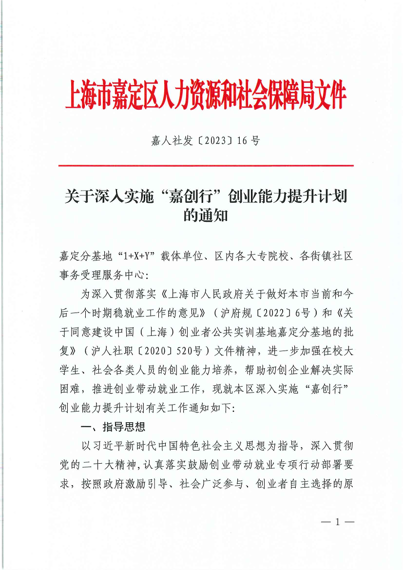 ??為深入貫徹落實(shí)《上海市人民政府關(guān)于做好本市當(dāng)前和今后一個(gè)時(shí)期穩(wěn)就業(yè)工作的意見》(滬府規(guī)〔2022〕6號)和《關(guān)于同意建設(shè)中國(上海)創(chuàng)業(yè)者公共實(shí)訓(xùn)基地嘉定分基地的批復(fù)》(滬人社職〔2020〕520號)文件精神,進(jìn)一步加強(qiáng)在校大學(xué)生、社會各類人員的創(chuàng)業(yè)能力培養(yǎng),幫助初創(chuàng)企業(yè)解決實(shí)際困難,推進(jìn)創(chuàng)業(yè)帶動(dòng)就業(yè)工作,現(xiàn)就本區(qū)深入實(shí)施“嘉創(chuàng)行”創(chuàng)業(yè)能力提升計(jì)劃有關(guān)工作通知如下: