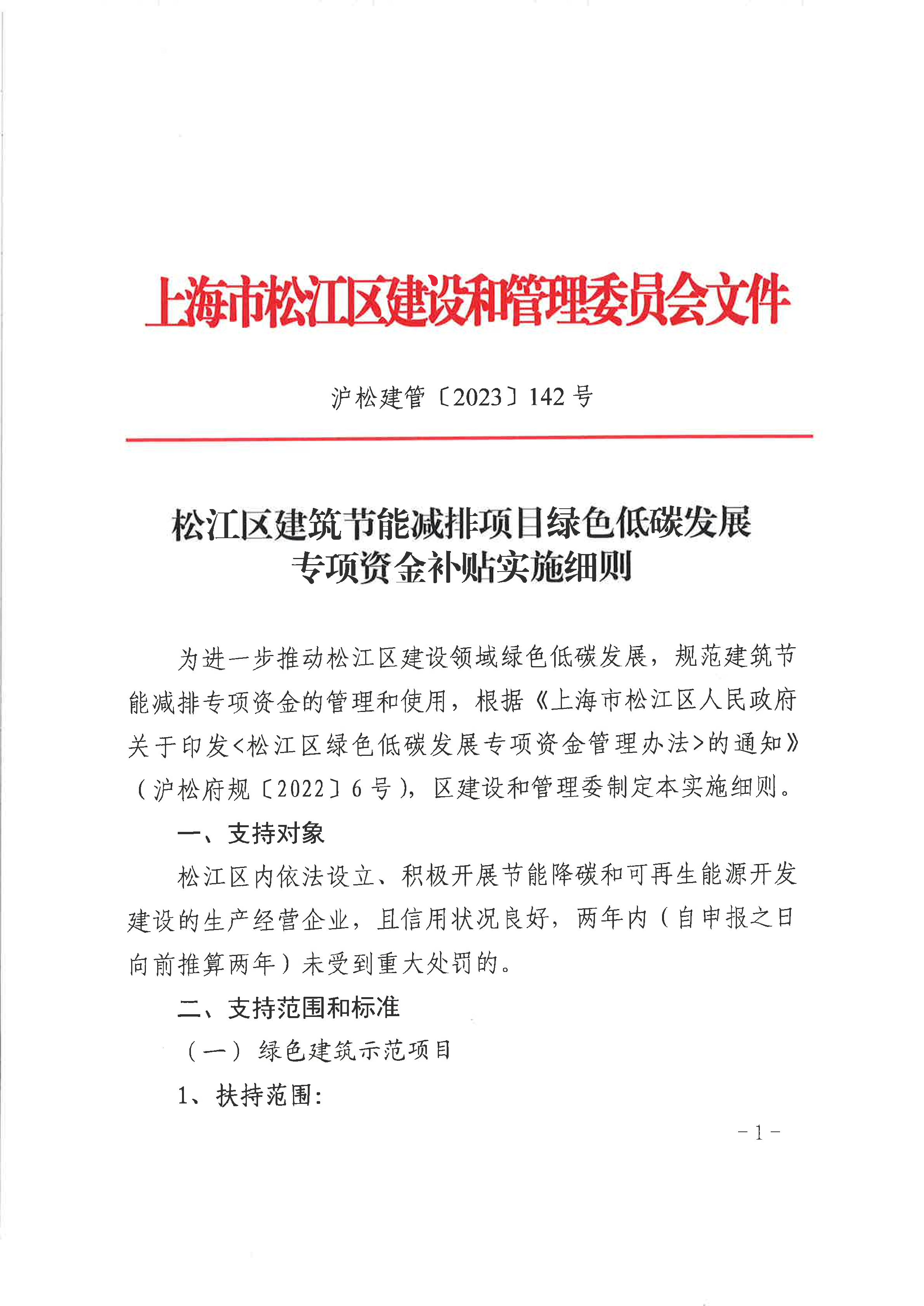 ??為進一步推動松江區(qū)建設(shè)領(lǐng)域綠色低碳發(fā)展,規(guī)范建筑節(jié)能減排專項資金的管理和使用,根據(jù)《上海市松江區(qū)人民政府關(guān)于印發(fā)<松江區(qū)綠色低碳發(fā)展專項資金管理辦法>的通知》(滬松府規(guī)〔2022〕6號),區(qū)建設(shè)和管理委制定本實施細則。