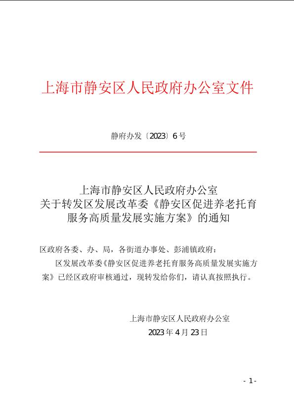 ??區(qū)發(fā)展改革委《靜安區(qū)促進(jìn)養(yǎng)老托育服務(wù)高質(zhì)量發(fā)展實(shí)施方案》已經(jīng)區(qū)政府審核通過,現(xiàn)轉(zhuǎn)發(fā)給你們,請認(rèn)真按照執(zhí)行。