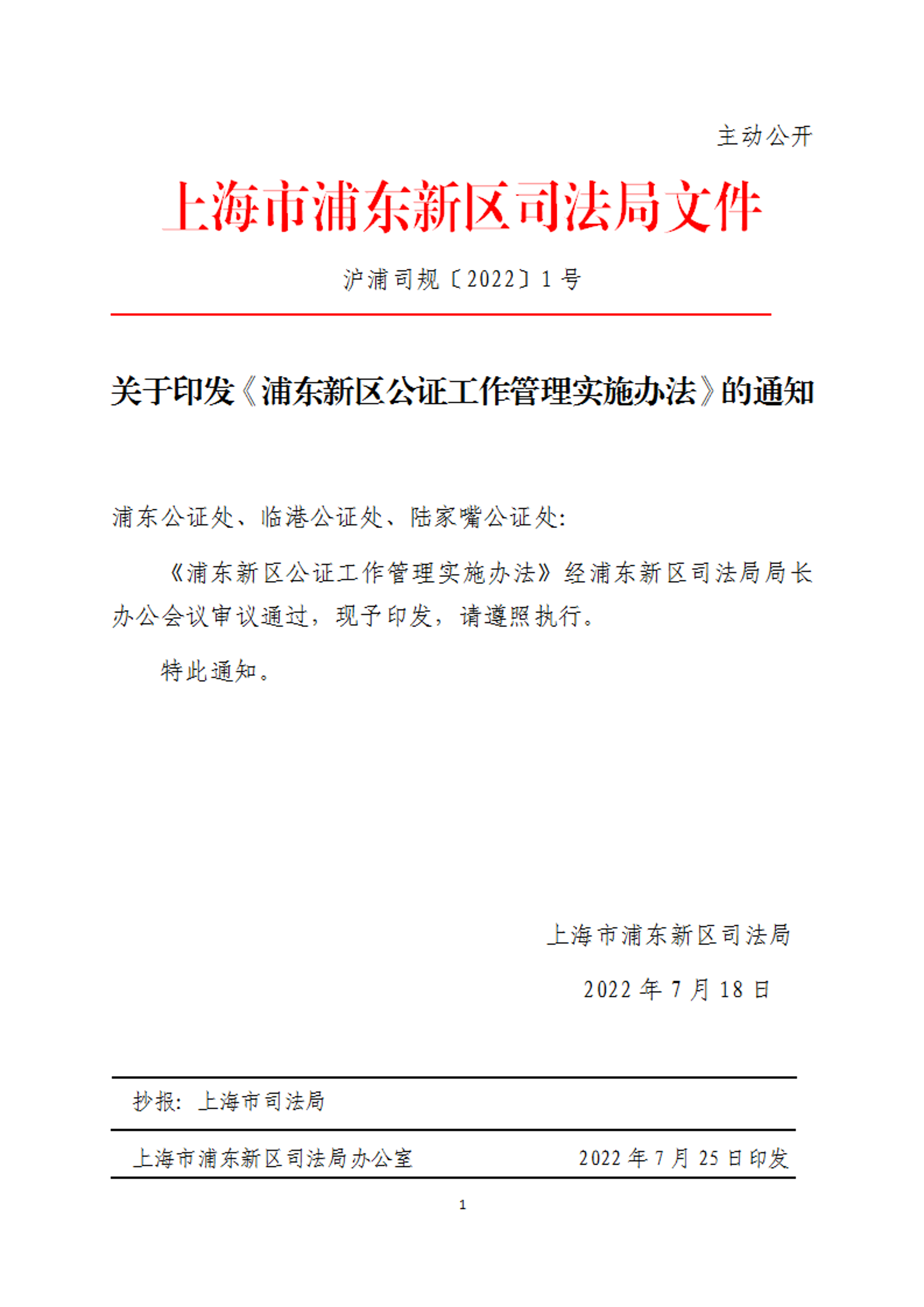 關(guān)于印發(fā)《浦東新區(qū)公證工作管理實(shí)施辦法》的通知
