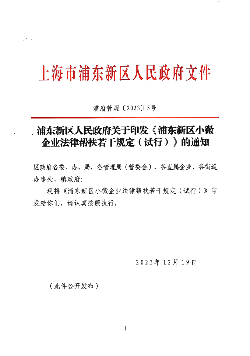 浦東新區(qū)人民政府關于印發(fā)《浦東新區(qū)小微企業(yè)法律幫扶若干規(guī)定(試行)》的通知