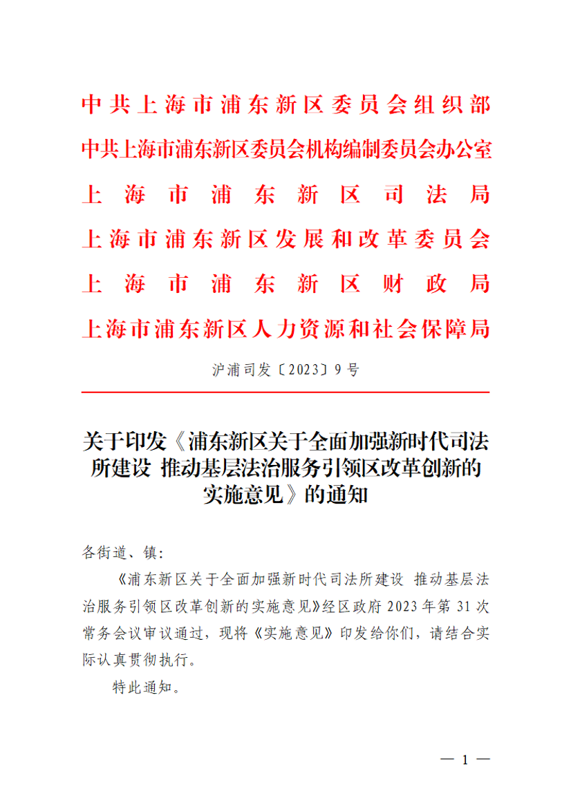 浦東新區(qū)關(guān)于全面加強(qiáng)新時(shí)代司法所建設(shè)推動(dòng)基層法治服務(wù)引領(lǐng)區(qū)改革創(chuàng)新的實(shí)施意見(jiàn)