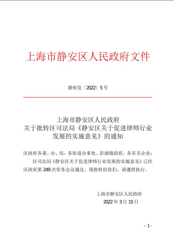 靜安區(qū)關(guān)于促進(jìn)律師行業(yè)發(fā)展的實(shí)施意見