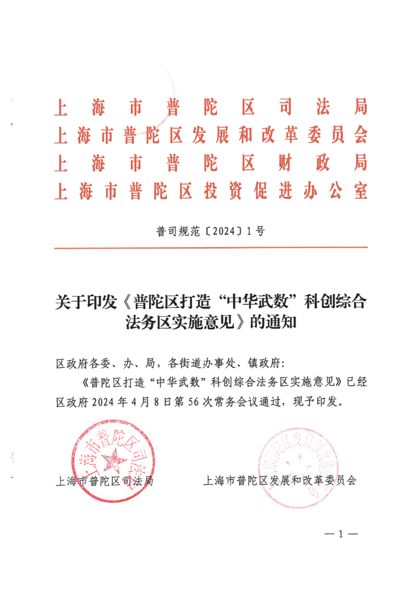 普陀區(qū)打造“中華武數(shù)”科創(chuàng)綜合法務區(qū)實施意見