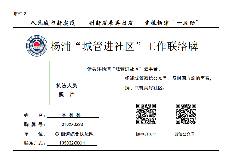 ??(一)健全日常聯(lián)系服務機制。在全區(qū)12個街道各居委會推進設立楊浦城管社區(qū)工作室,在長陽創(chuàng)谷、楊浦濱江等設立楊浦城管園區(qū)工作站;在各室(站)明確1-2名城管隊員作為“城管進社區(qū)”綜合治理服務工作聯(lián)絡員,負責城管執(zhí)法事項的受理查處、咨詢服務、普法宣傳、矛盾調處等工作;在社區(qū)的每幢樓棟,設置楊浦“城管進社區(qū)”工作聯(lián)絡牌(附件2),公開聯(lián)絡員的姓名、聯(lián)系方式、主要執(zhí)法事項以及“城管進社區(qū)”工作二維碼。通過織密“城管進社區(qū)”綜合治理服務工作網(wǎng),讓社區(qū)居民、園區(qū)企業(yè)真切感受到執(zhí)法保障零距離、執(zhí)法服務面對面,遇事能夠找得到、問得清、有回音。
