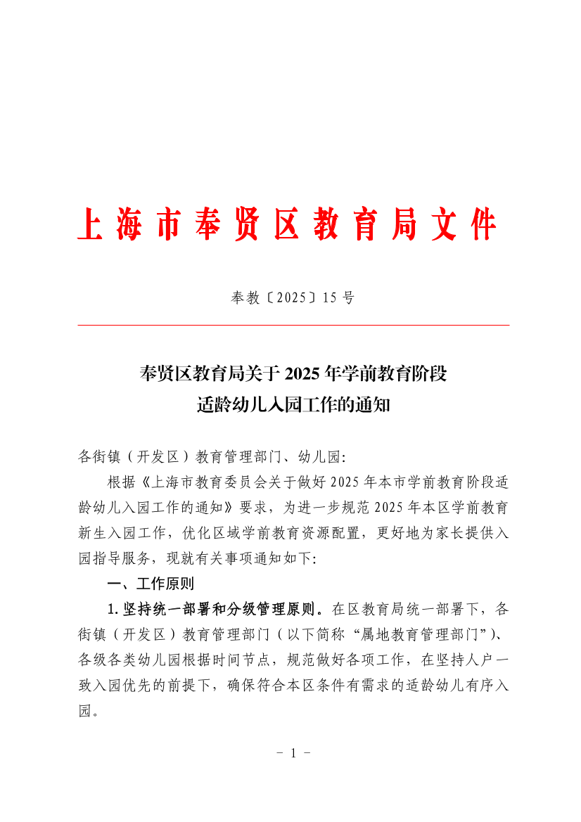 ??4月15日,區(qū)教育局發(fā)布2025年奉賢區(qū)學(xué)前教育入園政策。