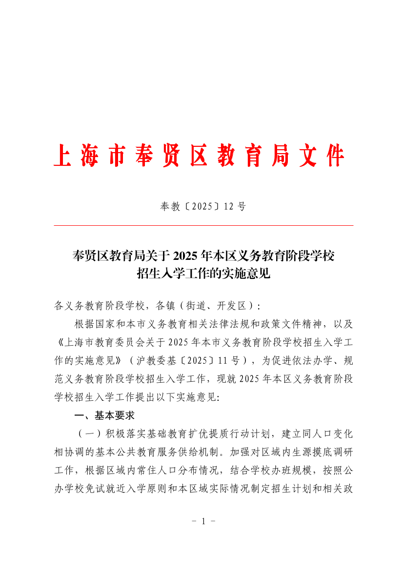??根據國家和本市義務教育相關法律法規(guī)和政策文件精神,以及《上海市教育委員會關于2025年本市義務教育階段學校招生入學工作的實施意見》(滬教委基〔2025〕11號),為促進依法辦學、規(guī)范義務教育階段學校招生入學工作,現就2025年本區(qū)義務教育階段學校招生入學工作提出以下實施意見: