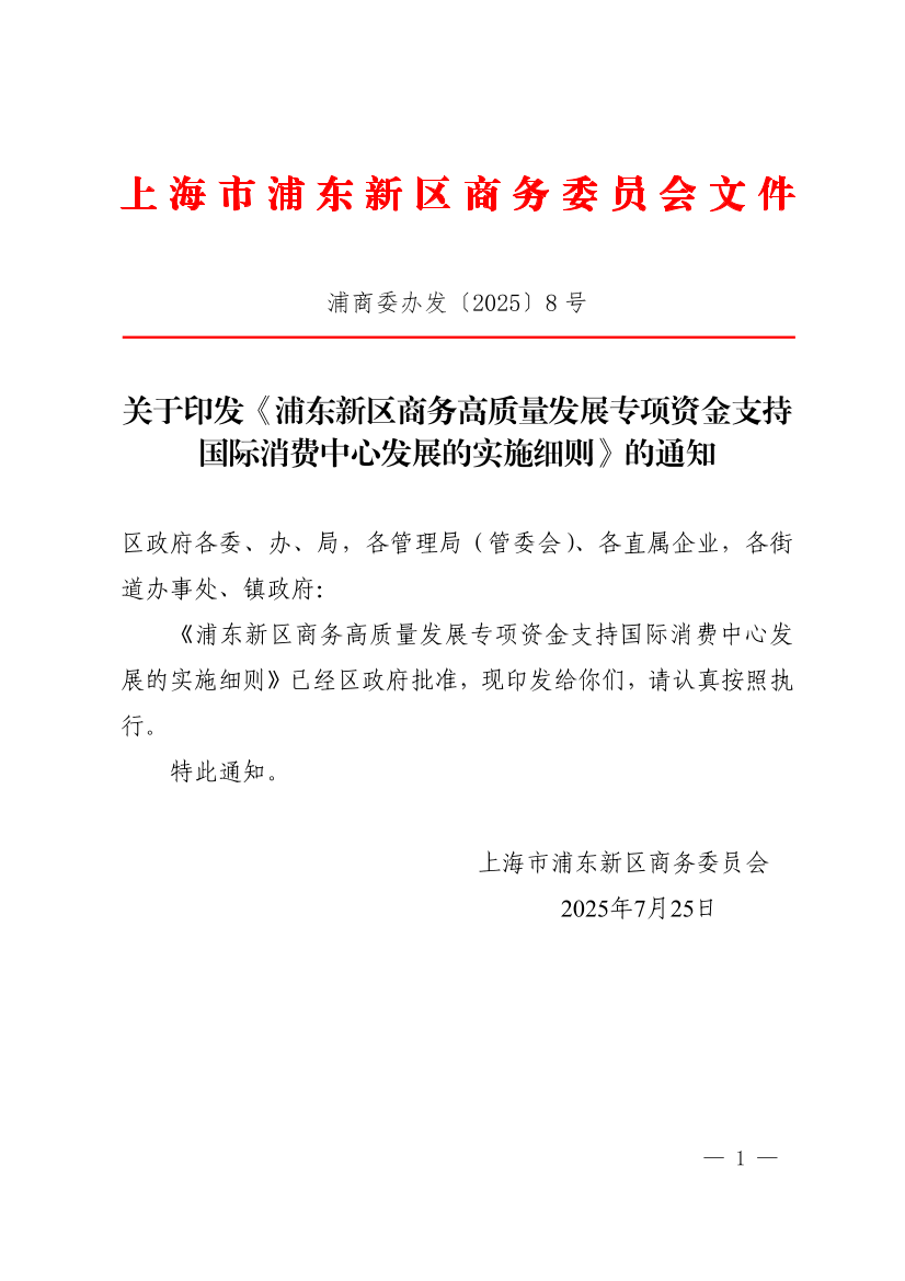 浦東新區(qū)商務(wù)高質(zhì)量發(fā)展專項(xiàng)資金支持國(guó)際消費(fèi)中心發(fā)展的實(shí)施細(xì)則