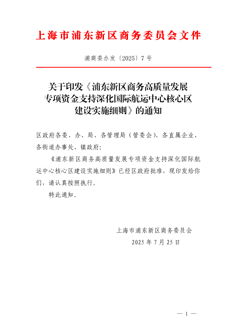 浦東新區(qū)商務(wù)高質(zhì)量發(fā)展專項(xiàng)資金支持深化國(guó)際航運(yùn)中心核心區(qū)建設(shè)實(shí)施細(xì)則