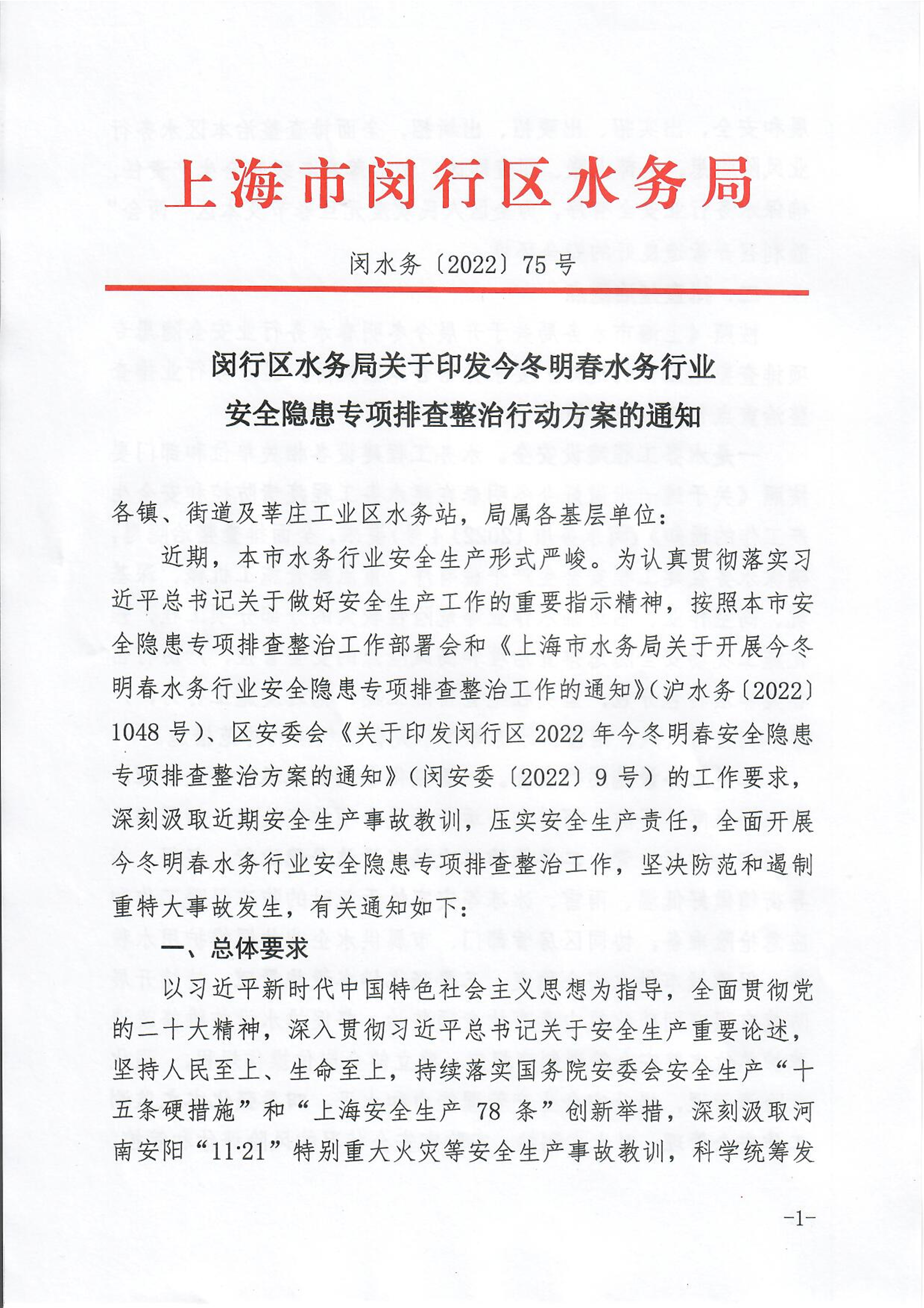 閔行區(qū)水務(wù)局關(guān)于印發(fā)今冬明春水務(wù)行業(yè)安全隱患專項(xiàng)排查整治行動(dòng)方案的通知