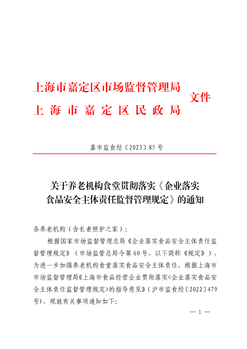 ??根據(jù)國家市場監(jiān)督管理總局《企業(yè)落實(shí)食品安全主體責(zé)任監(jiān)督管理規(guī)定》(市場監(jiān)管總局令第60號(hào),以下簡稱《規(guī)定》),為進(jìn)一步加強(qiáng)養(yǎng)老機(jī)構(gòu)食堂落實(shí)食品安全主體責(zé)任,根據(jù)上海市市場監(jiān)督管理局《上海市食品經(jīng)營企業(yè)貫徹落實(shí)<企業(yè)落實(shí)食品安全主體責(zé)任監(jiān)督管理規(guī)定>的指導(dǎo)意見》(滬市監(jiān)食經(jīng)〔2022〕479號(hào)),現(xiàn)就有關(guān)事項(xiàng)通知如下:
