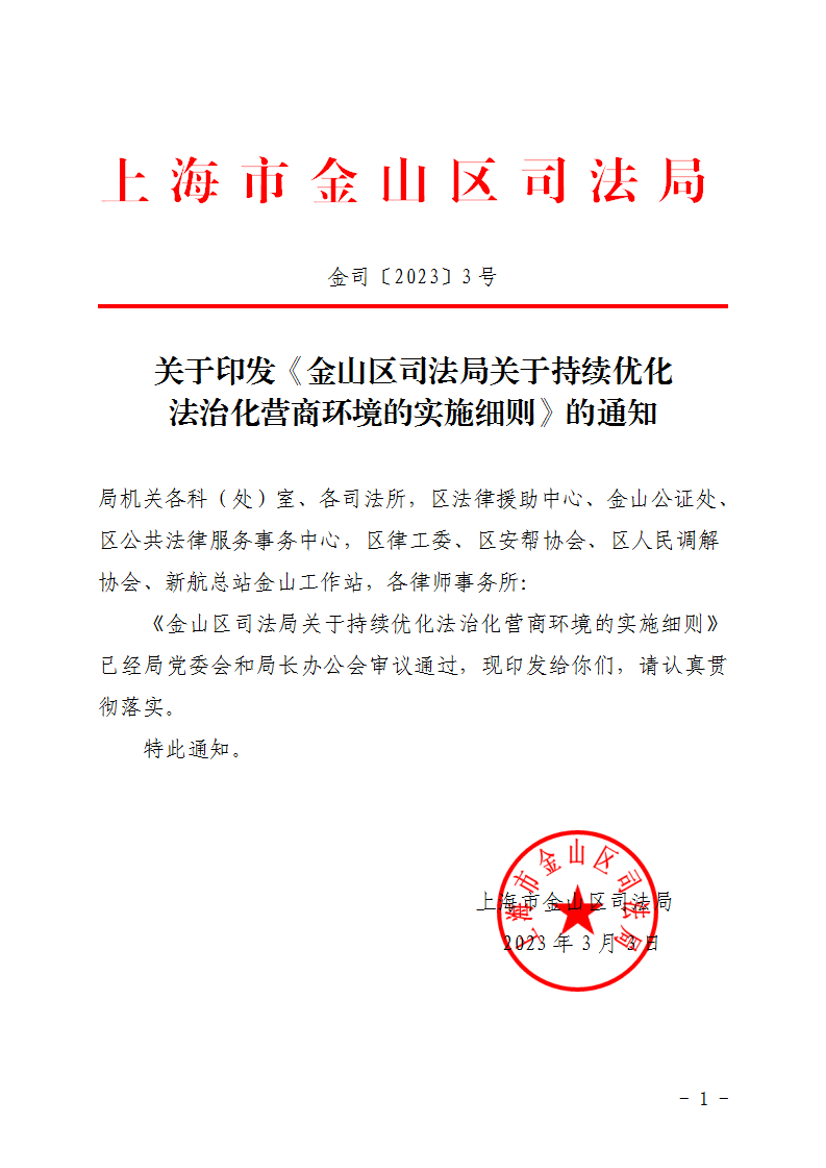 金山區(qū)司法局關于持續(xù)優(yōu)化法治化營商環(huán)境的實施細則