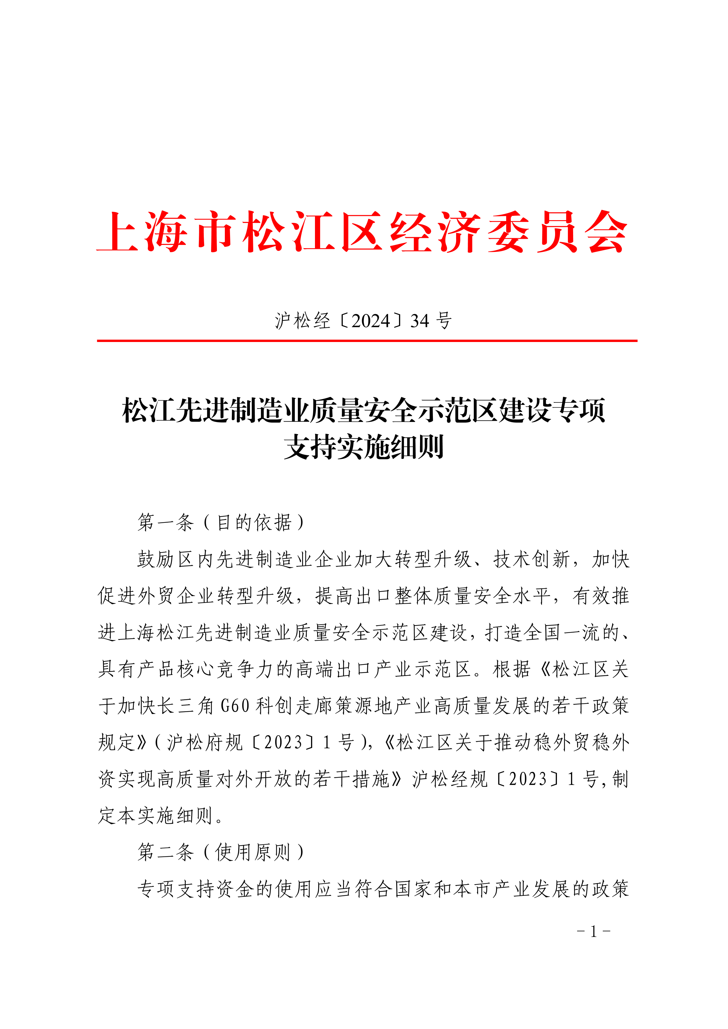 松江先進(jìn)制造業(yè)質(zhì)量安全示范區(qū)建設(shè)專(zhuān)項(xiàng)支持實(shí)施細(xì)則