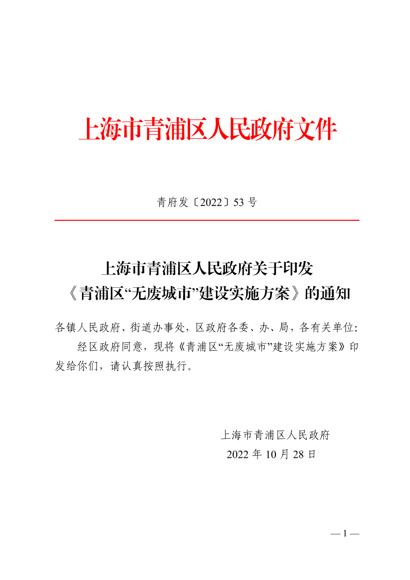 經(jīng)區(qū)政府同意,現(xiàn)將《青浦區(qū)“無廢城市”建設(shè)實(shí)施方案》印發(fā)給你們,請(qǐng)認(rèn)真按照?qǐng)?zhí)行。