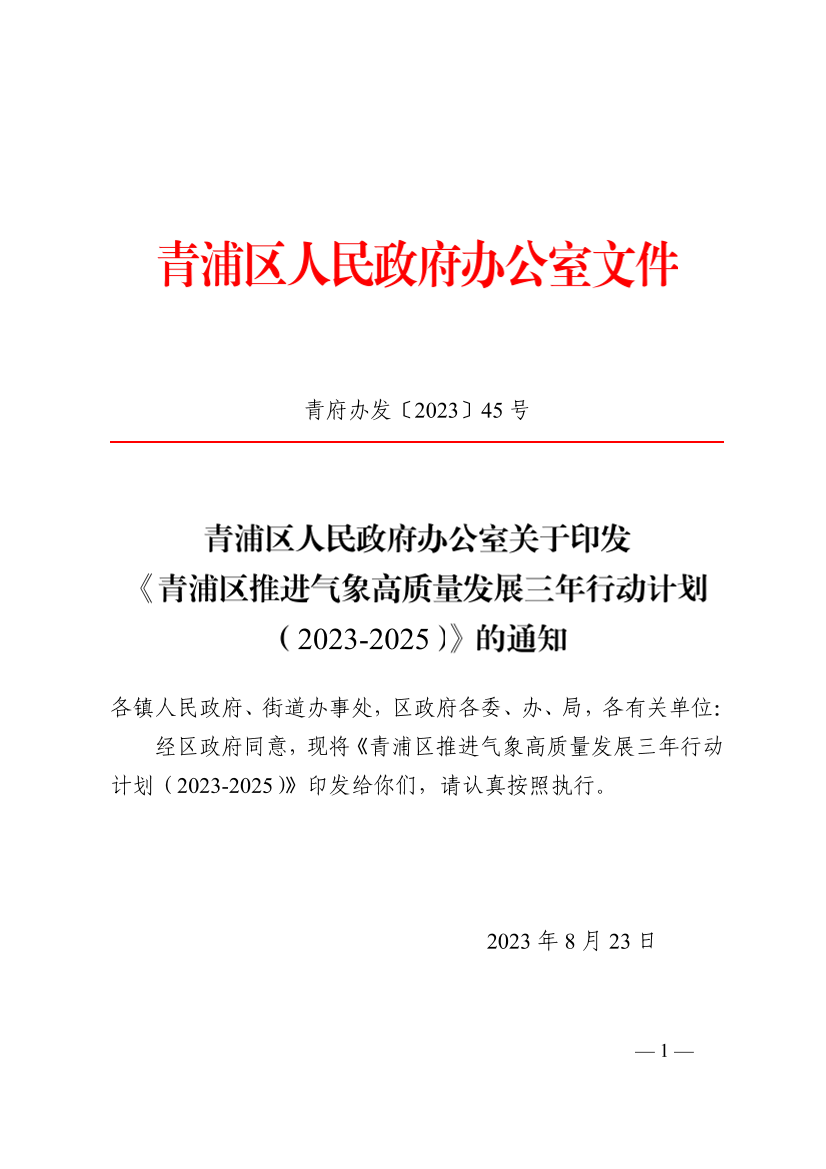 青浦區(qū)推進(jìn)氣象高質(zhì)量發(fā)展三年行動(dòng)計(jì)劃(2023~2025年)