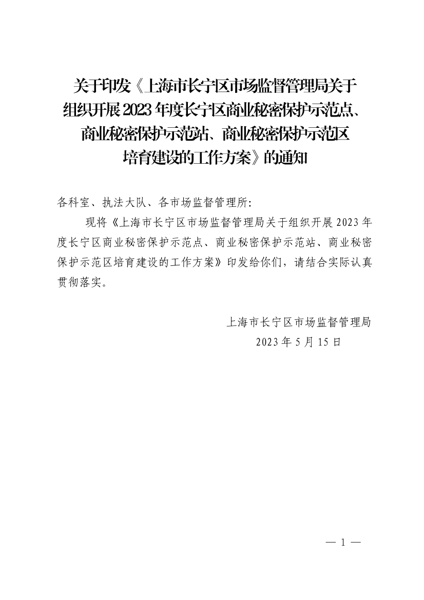 關(guān)于組織開展2023年度長寧區(qū)商業(yè)秘密保護(hù)示范點(diǎn)、商業(yè)秘密保護(hù)示范站、商業(yè)秘密保護(hù)示范區(qū)培育建設(shè)的工作方案