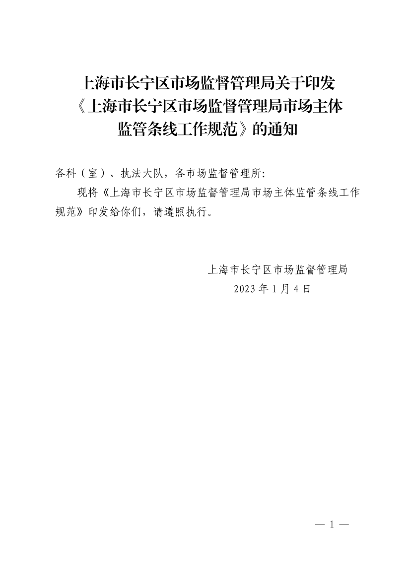 ??現(xiàn)將《上海市長寧區(qū)市場監(jiān)督管理局市場主體監(jiān)管條線工作規(guī)范》印發(fā)給你們,請遵照執(zhí)行。