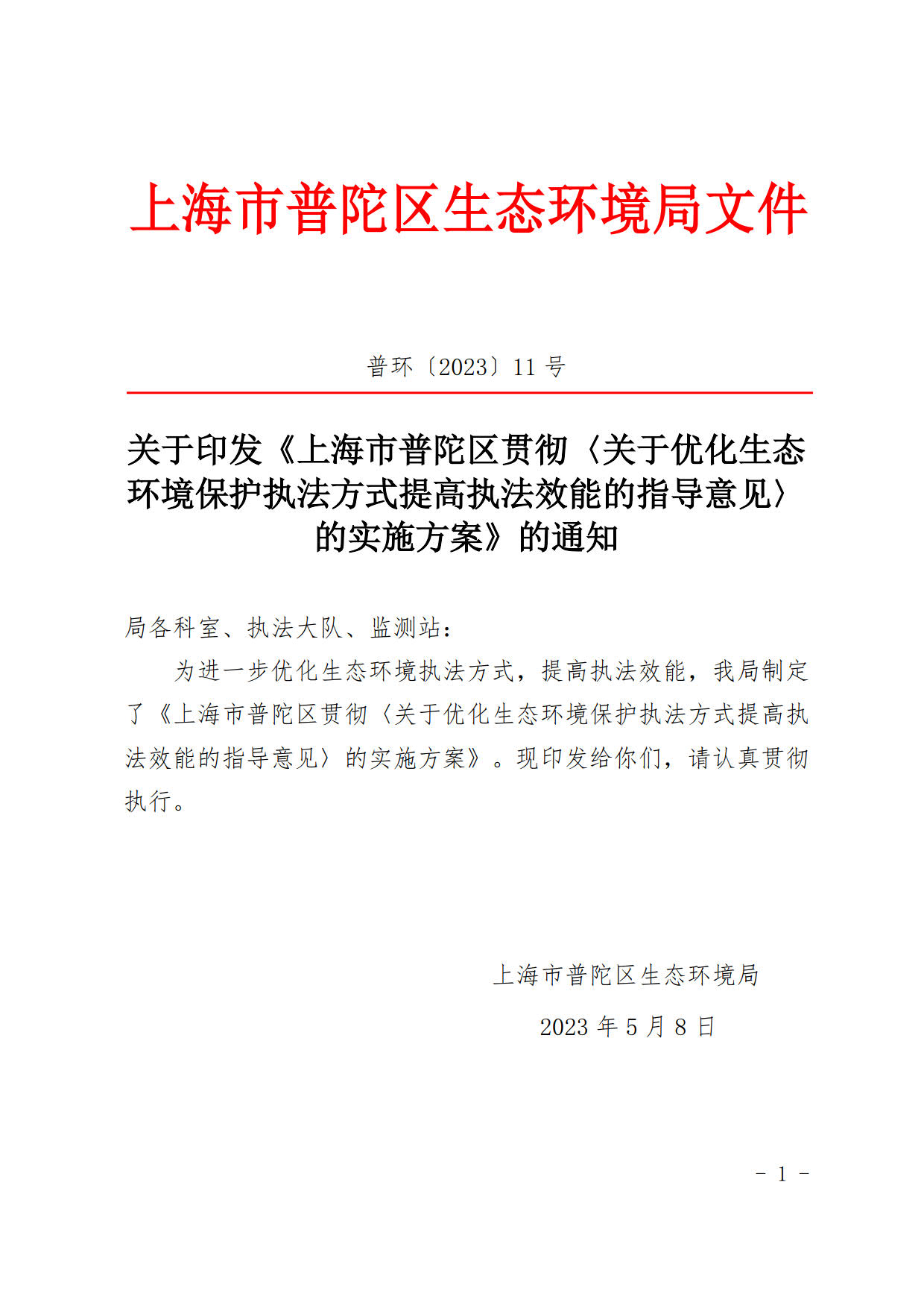 上海市普陀區(qū)貫徹《關(guān)于優(yōu)化生態(tài)環(huán)境保護執(zhí)法方式提高執(zhí)法效能的指導意見》的實施方案