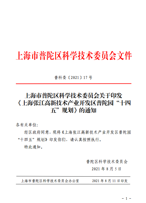 上海市普陀區(qū)科學(xué)技術(shù)委員會(huì)關(guān)于印發(fā)《上海張江高新技術(shù)產(chǎn)業(yè)開發(fā)區(qū)普陀園“十四五”規(guī)劃》的通知