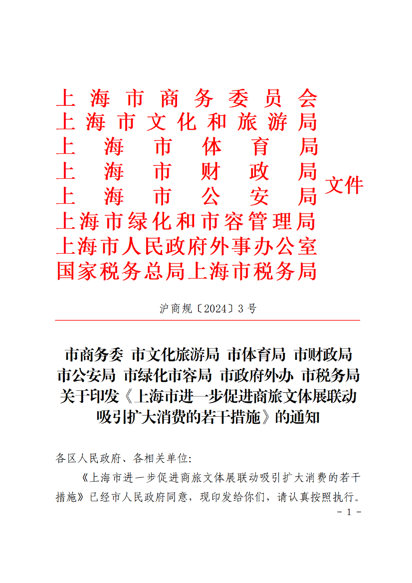 上海市進(jìn)一步促進(jìn)商旅文體展聯(lián)動(dòng)吸引擴(kuò)大消費(fèi)的若干措施