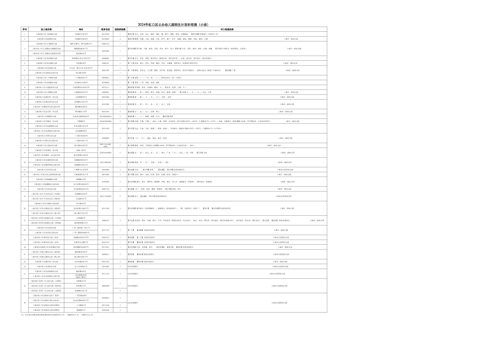 | 2024年虹口區(qū)公辦幼兒園招生計(jì)劃和范圍(小班) | |||||