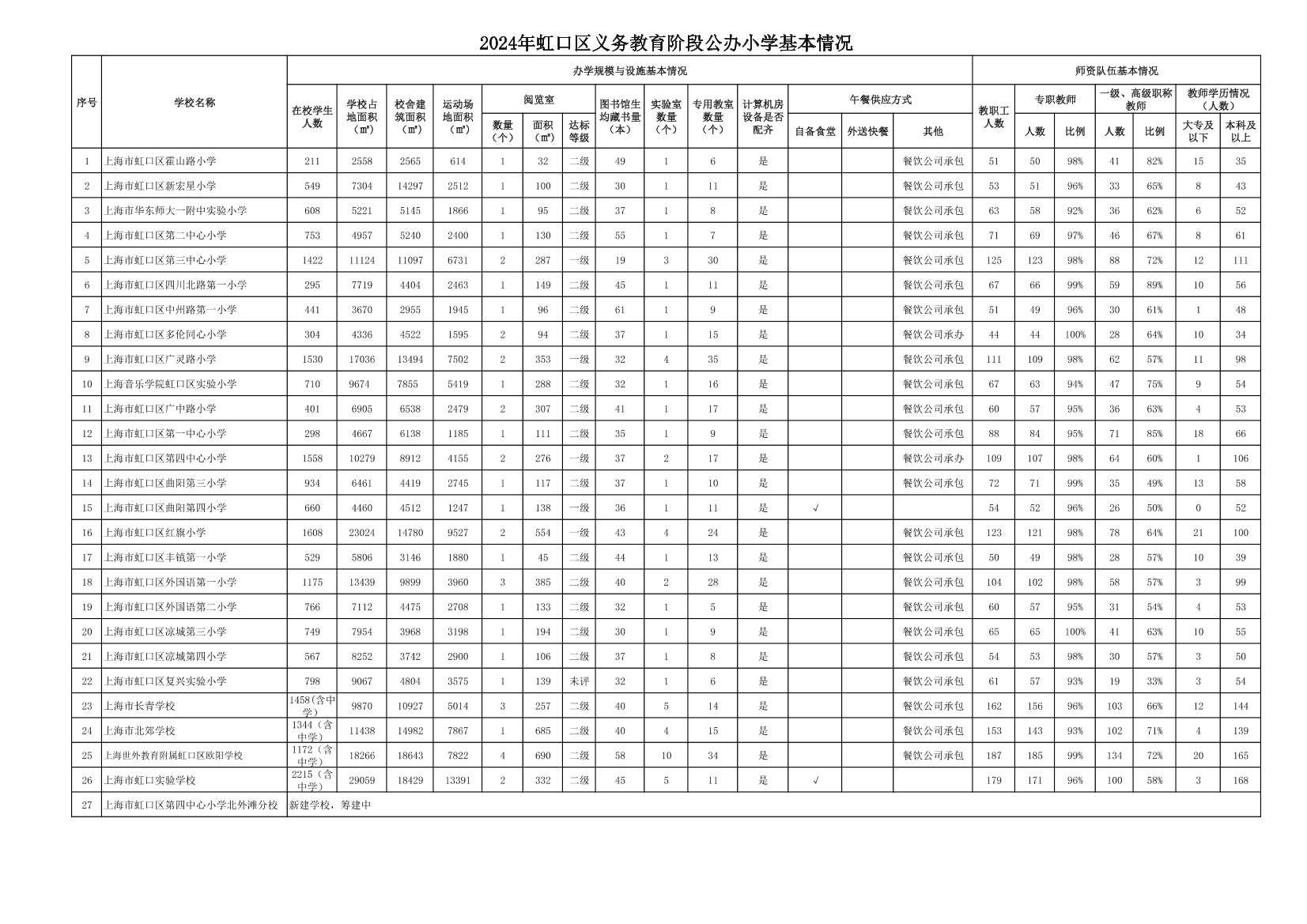 | 2024年虹口區(qū)義務(wù)教育階段公辦小學(xué)基本情況 | ||||||||||||||||||||||