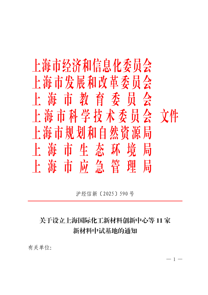 ??根據(jù)《上海市新材料中試基地建設(shè)與中試項目管理辦法(試行)》(滬經(jīng)信規(guī)范〔2023〕6號)、《上海市新材料中試基地和中試項目生態(tài)環(huán)境保護(hù)指引(2024年版)》(滬環(huán)評〔2024〕120號)、《關(guān)于開展2024年新材料中試基地申報工作的通知》(滬經(jīng)信新〔2024〕654號)等文件要求,經(jīng)企業(yè)主體申報、所在園區(qū)和所在區(qū)推薦,市級部門聯(lián)合評價,評價結(jié)果公示等程序,現(xiàn)公告設(shè)立上海國際化工新材料創(chuàng)新中心等11家新材料中試基地。