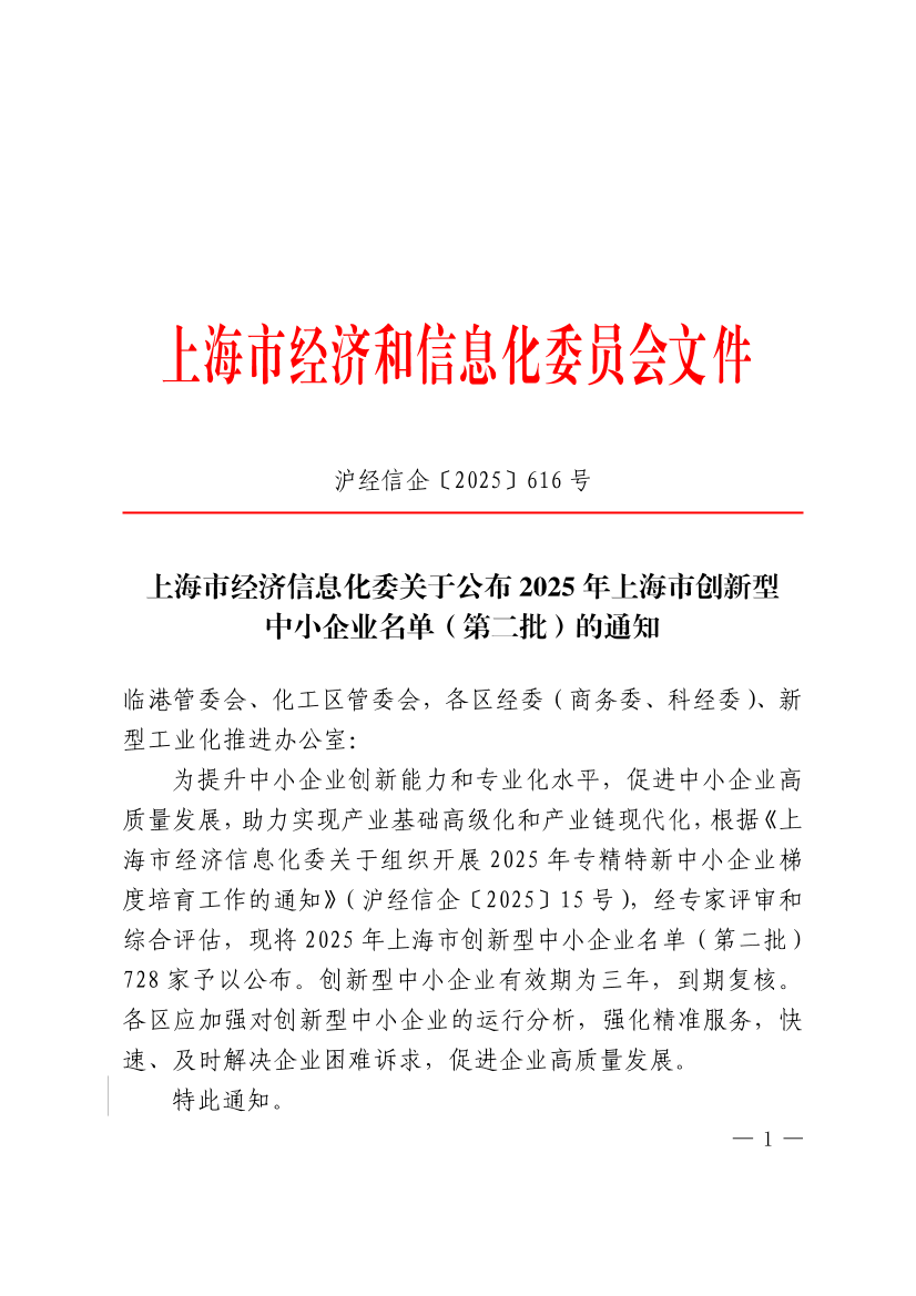 ??附件:2025年上海市創(chuàng)新型中小企業(yè)(第二批)名單