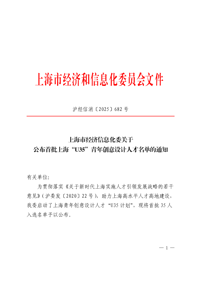 ??為貫徹落實《關(guān)于新時代上海實施人才引領(lǐng)發(fā)展戰(zhàn)略的若干意見》(滬委發(fā)〔2020〕22號),助力上海高水平人才高地建設(shè),我委啟動了上海青年創(chuàng)意設(shè)計人才“U35計劃”,現(xiàn)將首批35人入選名單予以公布。