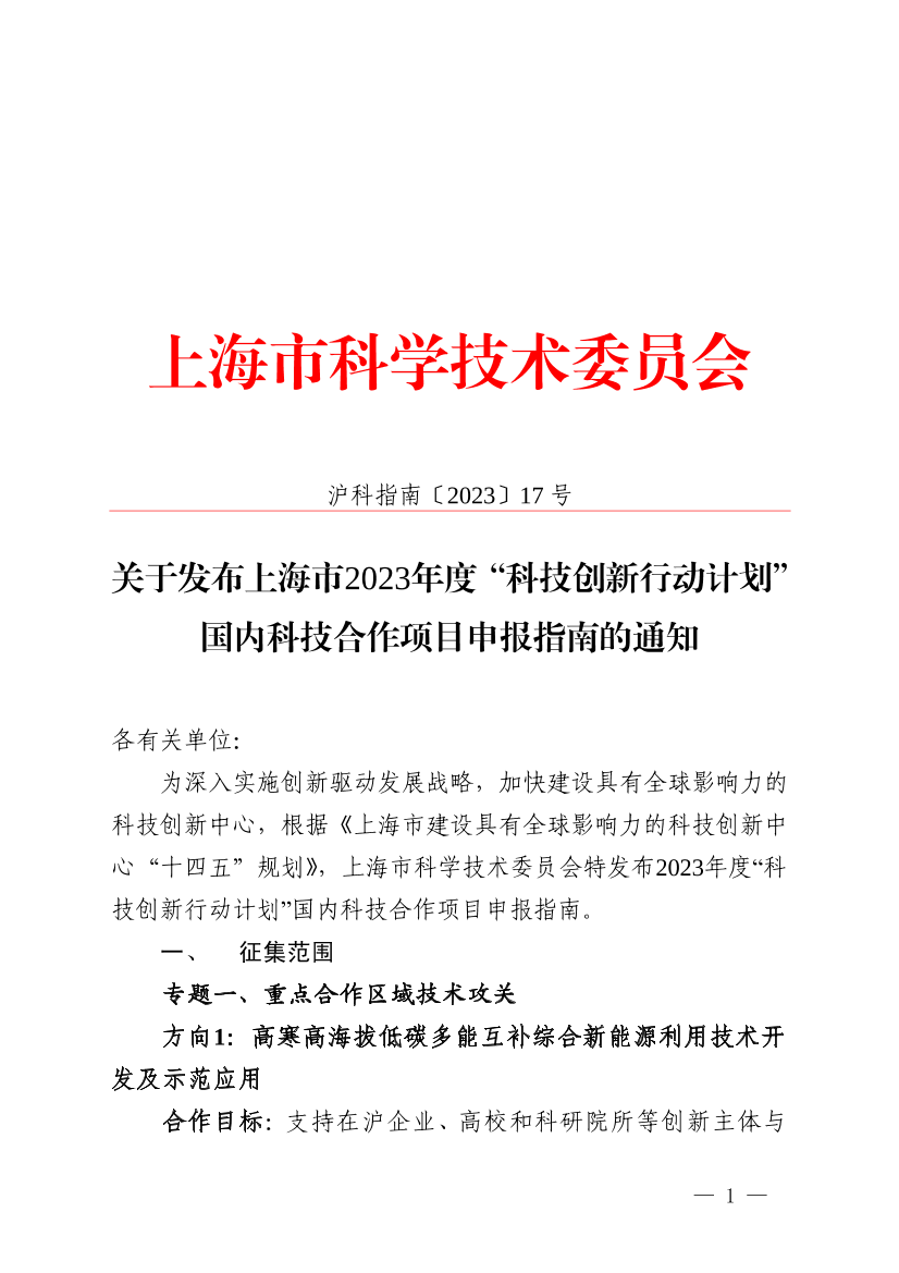 ??為深入實(shí)施創(chuàng)新驅(qū)動(dòng)發(fā)展戰(zhàn)略,加快建設(shè)具有全球影響力的科技創(chuàng)新中心,根據(jù)《上海市建設(shè)具有全球影響力的科技創(chuàng)新中心“十四五”規(guī)劃》,上海市科學(xué)技術(shù)委員會(huì)特發(fā)布2023年度“科技創(chuàng)新行動(dòng)計(jì)劃”國內(nèi)科技合作項(xiàng)目申報(bào)指南。