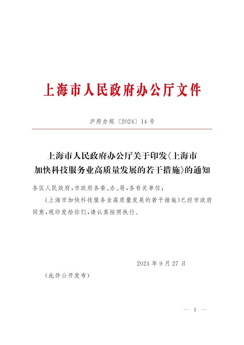 上海市人民政府辦公廳關(guān)于印發(fā)《上海市加快科技服務(wù)業(yè)高質(zhì)量發(fā)展的若干措施》的通知