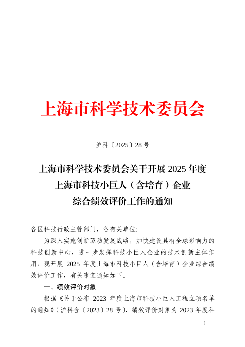 ??為深入實(shí)施創(chuàng)新驅(qū)動(dòng)發(fā)展戰(zhàn)略,加快建設(shè)具有全球影響力的科技創(chuàng)新中心,進(jìn)一步發(fā)揮科技小巨人企業(yè)的技術(shù)創(chuàng)新主體作用,現(xiàn)開展2025年度上海市科技小巨人(含培育)企業(yè)綜合績效評(píng)價(jià)工作,有關(guān)事宜通知如下。