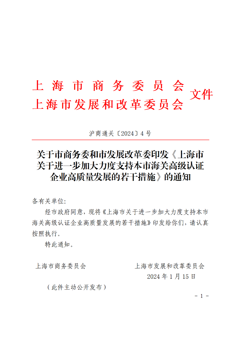 上海市關(guān)于進一步加大力度支持本市海關(guān)高級認證企業(yè)高質(zhì)量發(fā)展的若干措施